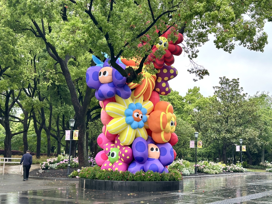 “Momo精灵部落”坐落于中山公园南区,主打自然松弛的交流体验,为慢热温柔、内心丰盈的人们打造同频社交空间。这里有FISH翡世设计、SUSAS上海城市空间艺术季、艺术家韩文斌等带来的情绪精灵、桃李杏一家、森语、花囡囡、量仔精灵等景点,主打一个搞怪放松、尽情表达自我。由海派插花大师带来的繁花融心、瓶安共筑等景点,则用花艺连接起城市与自然,吸引着不少市民驻足。