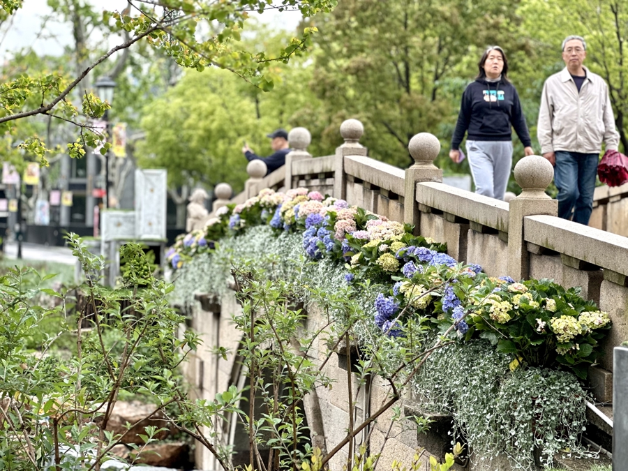 “P人遛遛”部落位于苏州河华政段,沿苏河滨水空间展开,适合随性漫游、边走边拍。这里有暂停事务所、放空花港、卧看云舒、EMO溶解廊等景点,由长宁区内5家绿化建设单位负责打造。步道中,还有上海乡土植物介绍的展板,告诉市民这些“土著”住在长宁哪些点位,吸引大家前往欣赏乡土植物的春夏秋冬。
