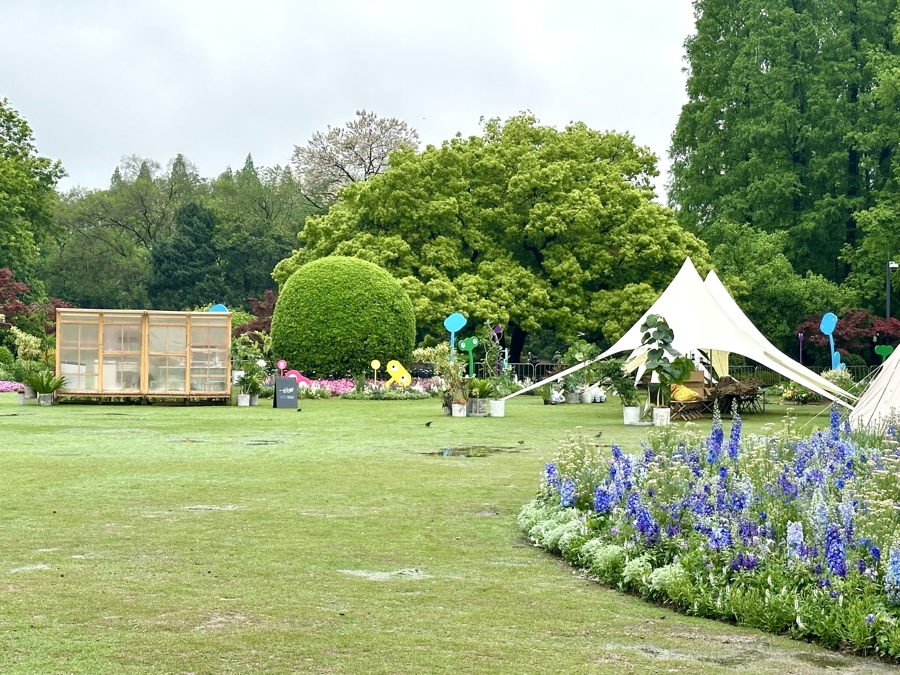 值得一提的是,草坪上还引入了“一尺花园”快闪店,并支起了帐篷,摆出了椅子。草坪一角,一个“百姓大舞台”正在搭建,花卉节期间将举办各种演出,花卉节之后舞台也将保留。坐在草坪上,喝咖啡享美食看演出,将成为花卉节特别惬意的玩法。