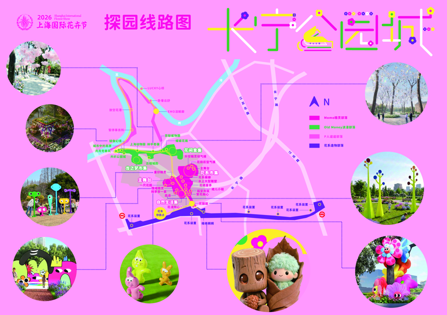 花系造物部落则以愚园路、长宁路、上生·新所、华山绿地为核心,联动龙之梦、愚园路等商业资源,将城市街区编织成一片可游、可赏、可参与的风景线。